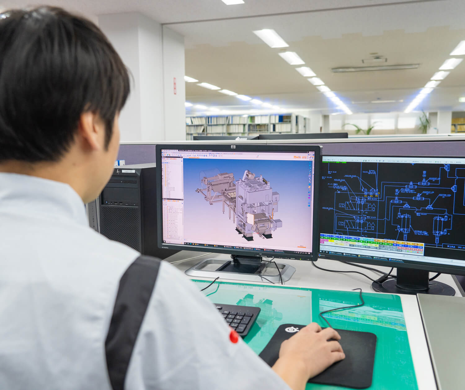 HIDAKAは、熱交換器製造システムの分野で培ったコア技術をベースとし、3D-CADによるシミュレーション技術やCAE(3次元解析)による数値化/視覚化する技術、ライン制御、IoTなどのシステムコントロール技術を活用し、新分野へ挑戦し続けています。