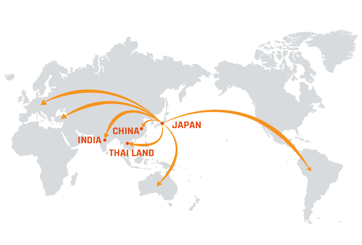 日本HIDAKA、または、中国・インド・タイなどの海外拠点から、緊急支援・設備メンテナンス・情報交換など、迅速なサービスを提供しております。