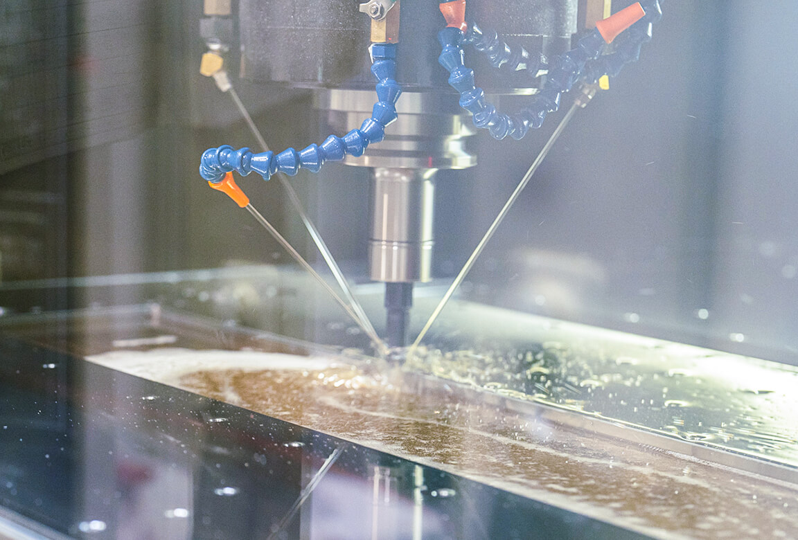 製造工程では、年間を通じ一定の温度・湿度に管理された専用ゾーンの中で、高精度加工機械群と熟練したオペレーターの加工技術により、妥協を許さない高品質のモノづくりが行われています。