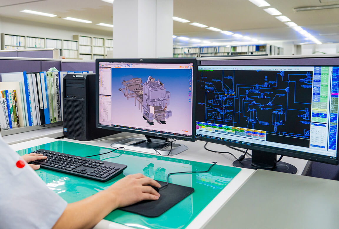 設計工程では、豊富な経験と蓄積した技術に新しい研究開発技術を結集して、複雑・高度化する製品形状や、製造プロセス革新/新システム開発を積極的に設計対応し、実現しています。