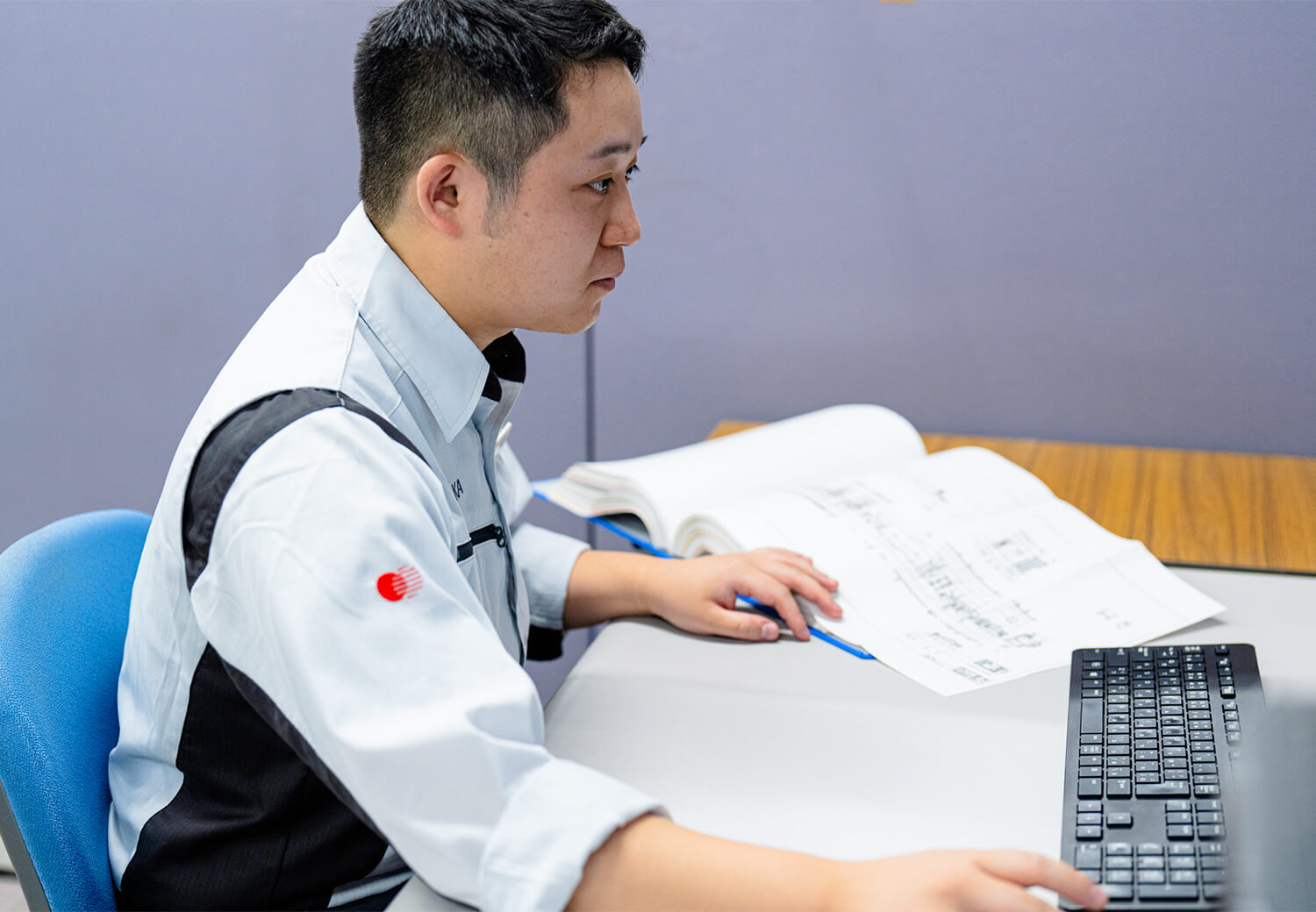 当社では、会社全体で改善提案活動を実施しています。設計は業務の中で比較的川上に位置するので、影響が大きいです。